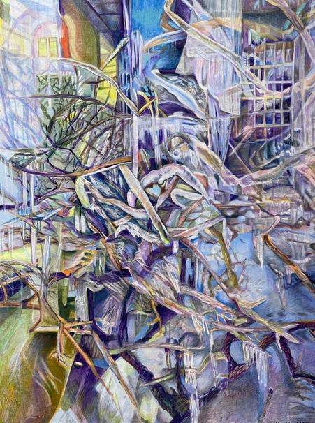 Reflection Ice Storm, colored pencil and acrylic on wood, 40” x 30”